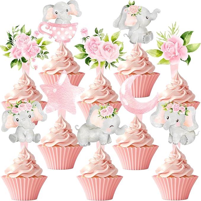 - VERSATILE DECOR - Ideal for girl-themed baby showers, pink elephant birthday parties, gender reveal celebrations, and more. These girl elephant cupcake toppers add the perfect touch of whimsy and joy to your event.
