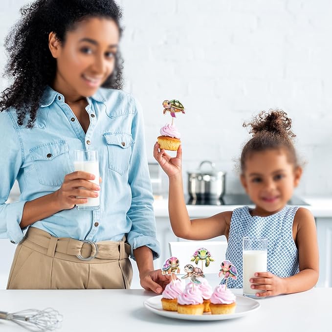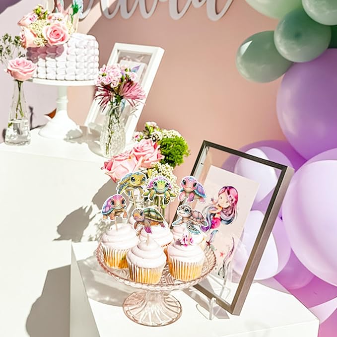- APPLICATION:Perfect decoration for cupcakes,cookies, cakes, fruits, brownies, ice cream and more,particularly suit to use on turtle theme cupcake toppers,ocean sea turtle theme party,baby shower theme party,kids birthday party cupcake decorations supplies