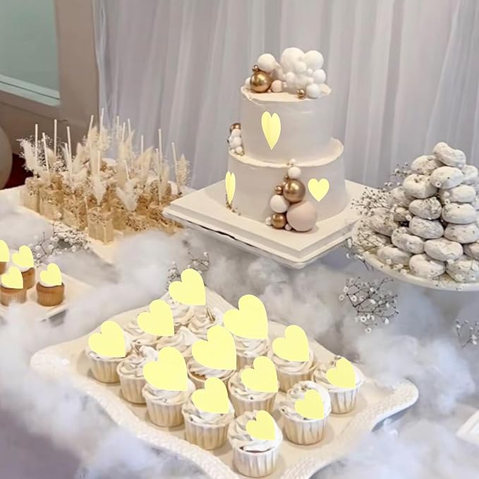 60 Pack Edible Heart Cake Topper Love Heart Cupcake Picks Water Paper Valentine's Day Theme Cake Decorations for Wedding Engagement Bridal Shower Birthday Party Supplies Yellow 2