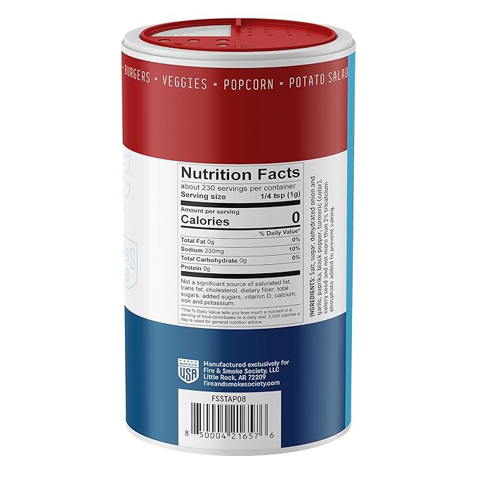Fire & Smoke Society Shake Tasty All Purpose Seasoning | BBQ Rubs for Smoking and Grilling | Steak, Chicken, Pork, Burgers | Large 8.1 oz