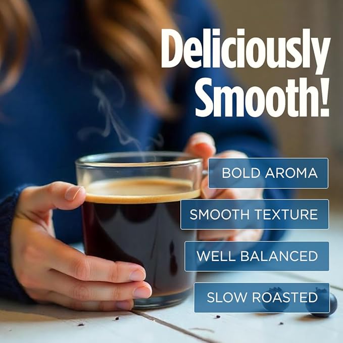 - ORGANIC LOW ACID COFFEE: Delicious, clean coffee as pure as it gets. You'll love the smooth, chocolatey robust taste of these Fair Trade & organic blueberry flavored coffee pods with dark roast beans ground fresh and sealed for a perfect cup of coffee.