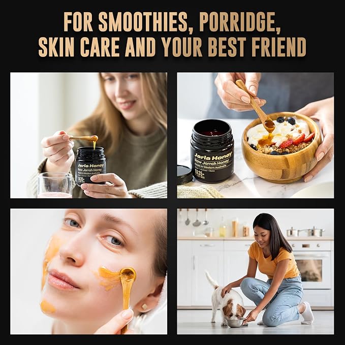 - ✔ EXQUISITE FLAVOR: Discover the rich, toffee-pudding-like taste of Jarrah Honey—smooth, mildly sweet, and delicious. A perfect alternative to the sometimes bitter or antiseptic flavor of Manuka Honey New Zealand produces. Our Jarrah honey is also guaranteed to not be Grainy or Crystallize. It’s ideal in smoothies, on porridge, or even eating straight from the jar.