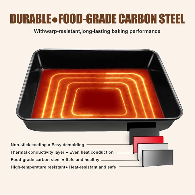 - ✭Lasagna pan has a smooth and non stick surface, which better preserves the deliciousness of the food itself. It has a non stick coating that ensures food safety and is suitable for cooking various foods, including grilled meat, chicken, potatoes, etc.