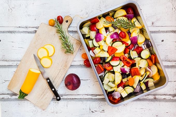 - NO MORE BURNT BOTTOMS: They perform better than ordinary stainless steel baking pans in terms of heat resistance and cook everything evenly, withstand temperatures of up to 500ºF / 260ºC without warping. Foods bake evenly due to aluminum’s superior heat conductivity