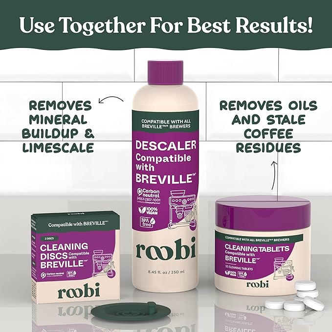 - POWERFULL ROOBI TRIO - For best results, use alongside Roobi Cleaning Tablets and Descaler. This powerful combination removes mineral buildup, limescale, oils, and stale coffee residue to keep your coffee brewer running like new.