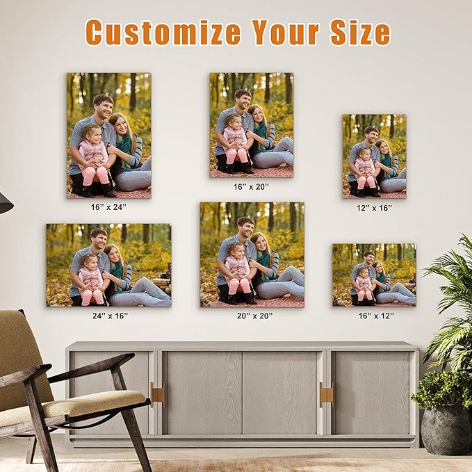 - Canvas Prints with Your Photos: Customized canvas wall art as decoration for living room, bedroom, bathroom, dining room, kitchen etc or a perfect gift for the person you cherish. Fill the walls of your home with stunning gallery wrapped canvas print.