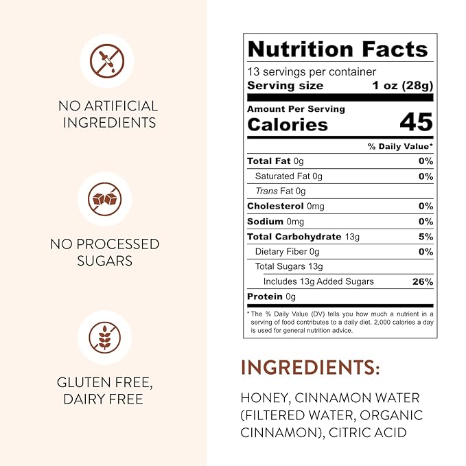 - 🫶 PREMIUM HAND-BREWED CRAFTSMANSHIP: We use cold water extraction to slowly infuse organic cinnamon bark into our honey syrup for an elevated flavor you can only get from using real ingredients. Hand-brewed in San Diego with organic cinnamon bark and premium wildflower honey, our syrup is a testament to elevating any recipe by using whole food ingredients with minimal processing.