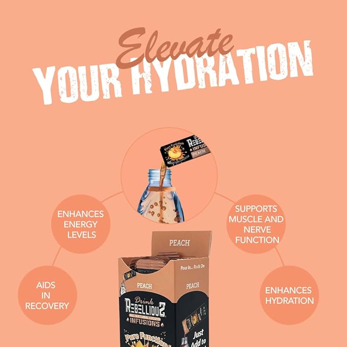 Rebellious Peach Organic Drink Mix ??Organic Zero Calorie Energy Drink Mix | Monk Fruit & Green Tea Extract | L-Theanine + Natural Caffeine | 100% Plant-Based | Pack of 10 | Keto, Kosher, Gluten-Free