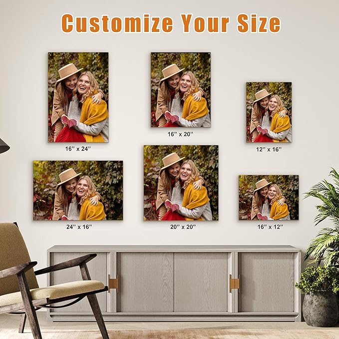- Canvas Prints with Your Photos: Customized canvas wall art as decoration for living room, bedroom, bathroom, dining room, kitchen etc or a perfect gift for the person you cherish. Fill the walls of your home with stunning gallery wrapped canvas print.