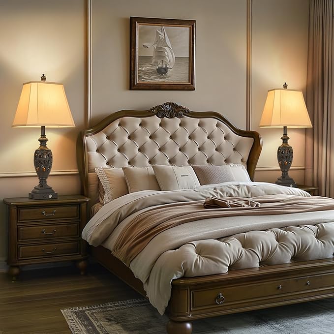 29.5" H Touch Traditional Table Lamp Set of 2,Vintage Bedside Nightstand Lamps with Dual USB and Night Light, 3-Color Hollow Out Leafwork Black Gold Finish Desk Lamps for Living Room,Bedroom