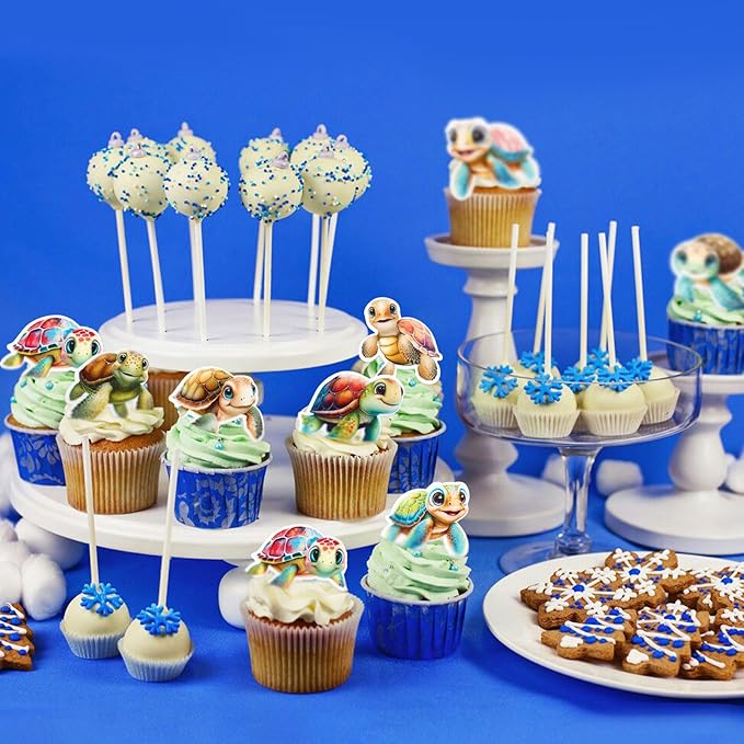 40 PCS Edible Turtles Cupcake Toppers for Baby Wafer Paper Sea Animals Baby Shower Party Picks for Drink Topper Sea Animals Theme Baby Shower Kids Birthday Party Supplies