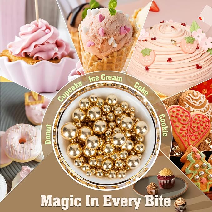 - 【Elegant Gold Pearl Sprinkles for Versatile Use】:The bright gold color adds a beautiful, classy touch to desserts, making them look extra special. These gold candy pearls are perfect for decorating cakes, cupcakes, cookies, giving them a shiny, eye-catching finish that’s sure to impress. Perfect for weddings, birthdays, anniversaries, Halloween, Christmas, Easter, Mother's Day, New Year’s and other special occasions.