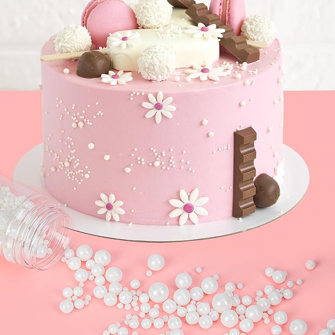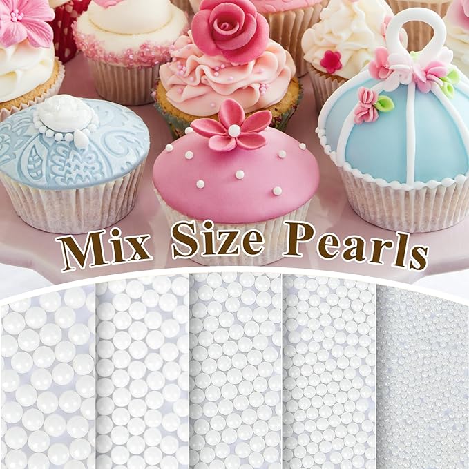 - 【Elegant White Pearls for Versatile Use】:Edible white pearls adds a beautiful, classy touch to desserts, making them look extra special. These white candy pearls are perfect for decorating cakes, cupcakes, cookies, giving them a elegant, refined finish that’s sure to impress. Perfect for weddings, birthdays, anniversaries, Halloween, Christmas, Easter, Mother's Day, New Year’s and other special occasions.