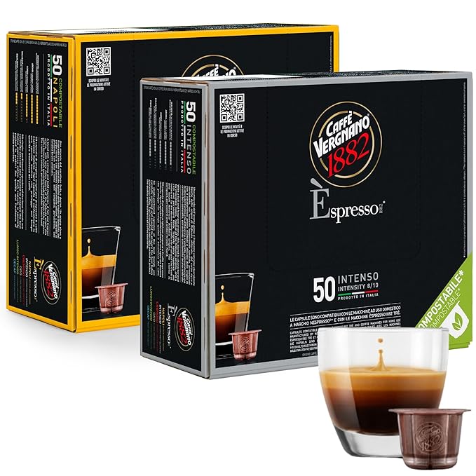 Caffe' Vergnano Medium Roast Espresso Bundle - Original Line Machine Compatible Arabica Robusta Italian Coffee For Nespresso Coffee Machines, Intenso & Napoli - 50 of Each Flavor (100 Capsules)