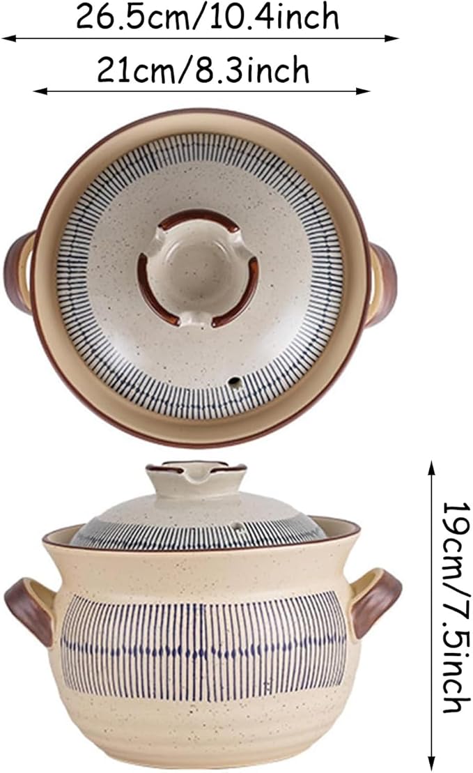 - [Premium Material] : Our ceramic clay pot with a lid is made of high-quality lithium pyroxene and clay. It is resistant to extreme temperatures, ensuring long-lasting heat preservation. It is ideal for stewing, simmering or cooking soups.