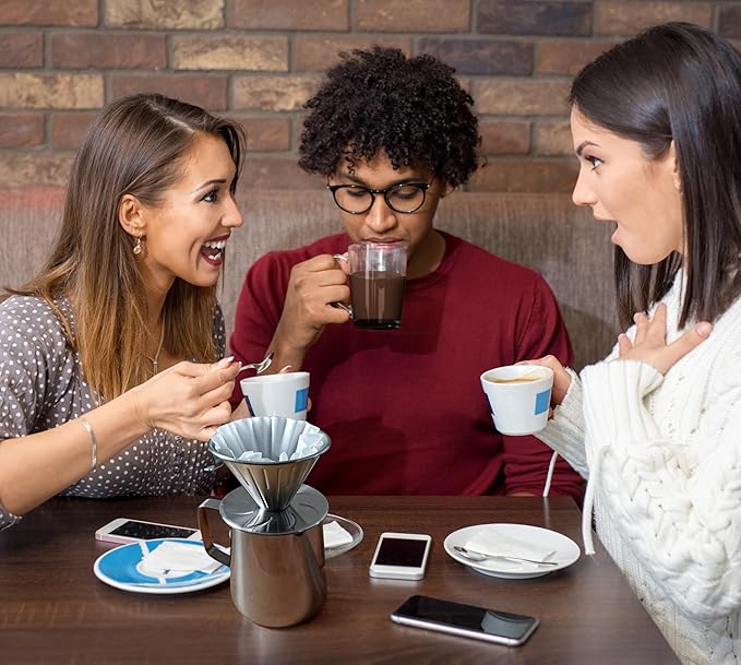 - Everyone's Coffee Buddy - Comes with 50 disposable filters + cleaning cloth. Instantly set up and enjoy rich, good flavor coffee with zero hassle on kitchen counters, office desks or picnic tables.