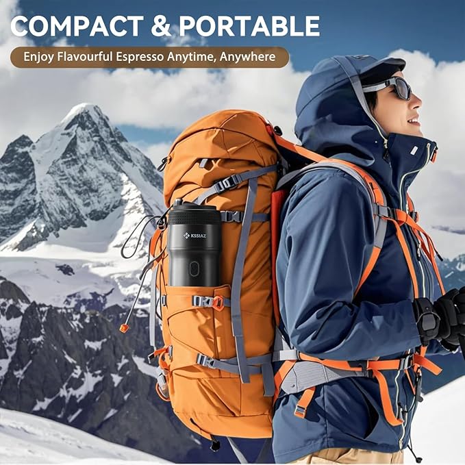- 【Portable Design】With a compact design, the electric espresso maker weighs 2.4 lbs and is only the size of a water bottle. It is portable and perfect for camping, travelling and hiking. This coffee maker is compatible with 12V car charging, so you can charge it wherever you go