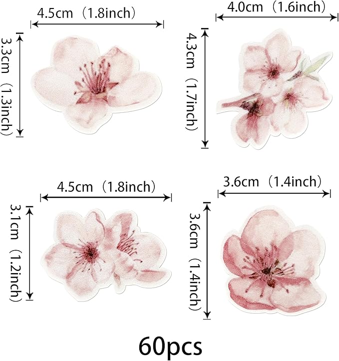60 Pack Edible Cherry Blossom Cupcake Toppers Cherry Flowers Cake Toppers Rice Paper Wafer Paper Cake Picks for Cherry Blossom Bridal Shower Baby Shower Kids Birthday Cake Decorations Color 2