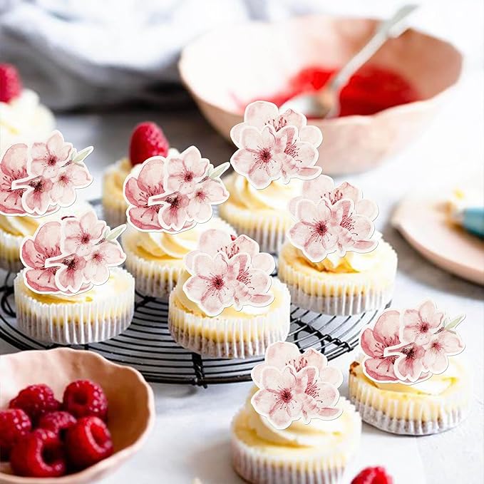 - APPLICATION: Cherry flowers decoration perfect for cupcakes,cookies, cakes, fruits, brownies, ice cream and more,particularly suit to use on cherry blossom theme bridal shower baby shower kids boys girls birthday theme party, wedding theme cupcake decorations