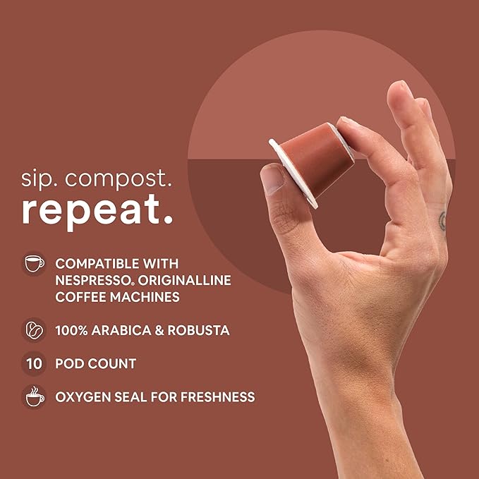 - Sip Sustainably - Make a positive impact with every cup of coffee dark roast Nespresso pods! Our innovative oxygen seal and BioBase packaging make each Nespresso capsule sustainable and compostable.