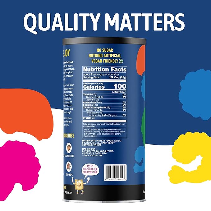 - Value Packed & High Quality – Get great value with every serving of our sourdough panko, crafted with wheat flour, sea salt, and yeast for a tasty, quality breading solution.