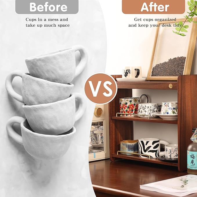 - Space Saving: Our three-layer large capacity mug storage rack not only provides dedicated space for storing coffee mugs, but also stores a variety of items to keep your desktop and kitchen neat and tidy.