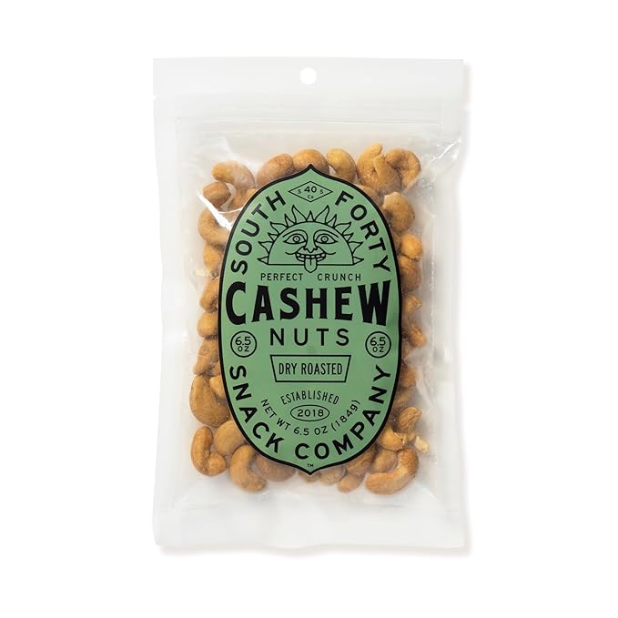 South 40 Snacks Dry Roasted Salted Giant-Sized Cashews, Just 2 Ingredients, Dry Roasted Cashews and Salt (6.5oz bags, pack of 4)