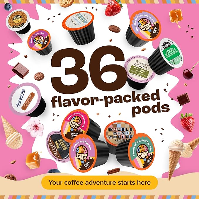 Crazy Cups Flavored Coffee Pods Variety Pack for Keurig K Cups Brewers, Assorted Flavored Coffee Sampler, 36 Count(Pack of 1)
