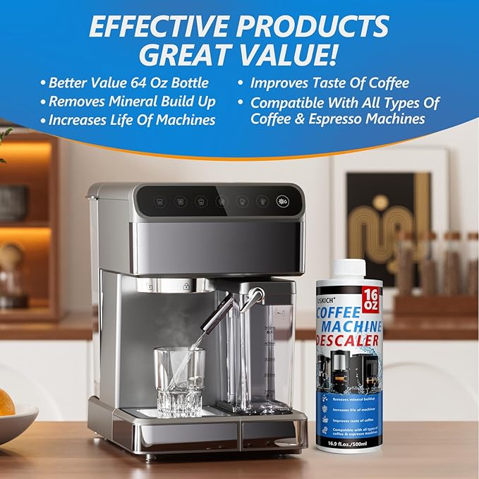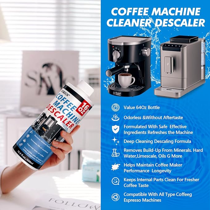 - Value Set of 4 Bottle: Each Package of USKICH Includes 4 Bottle of descaling. Our Coffee Machine Cleaner Solution will bring new life to your coffee maker descaler. One 16-ounce bottle works for 4 uses, meaning you get over a year’s worth of Values coffee maker descaler and cleaner