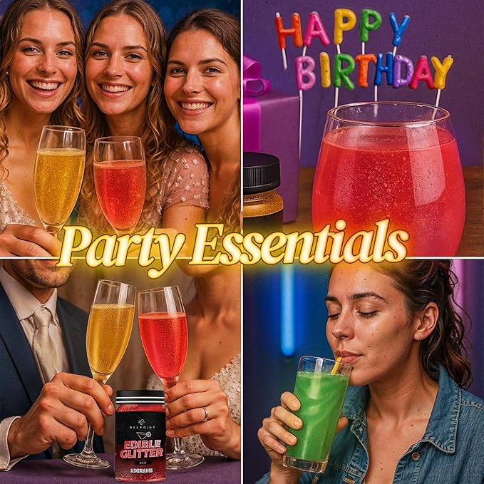 - Versatile & Fun: Our edible glitter dust powder adds sparkle to cakes, baking, cocktails, and more. Ideal for home baking, parties, and creative DIY projects. Perfect for birthdays, holidays, and special occasions