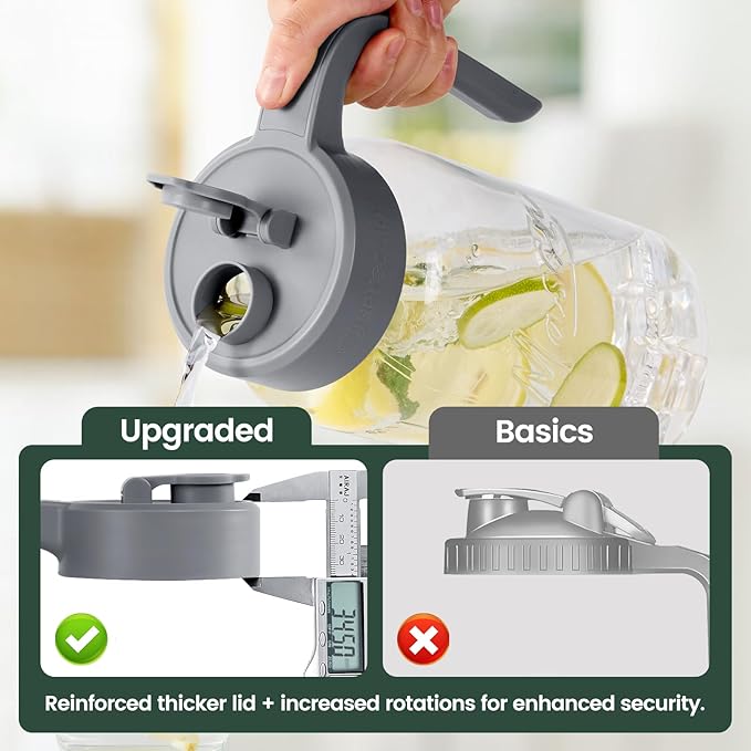 - Airtight and Leakproof Storage: Our Mason Jar Pitcher features an airtight and leakproof silicone seal, ensuring a seamless and mess-free storage experience. Keep your contents fresh and prevent leaks and drips, whether you store it in the fridge, on the counter, or in the pantry.