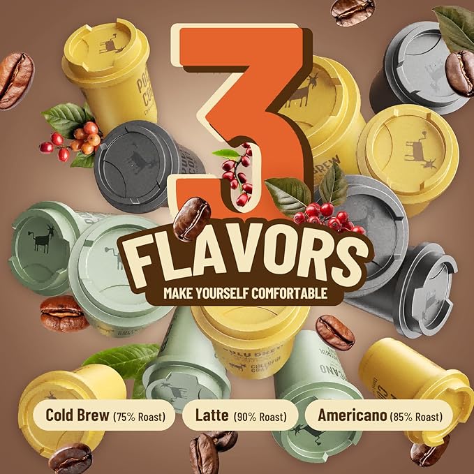 - 【Exquisite Flavor Profiles – Three Distinct Roasts】- Designed for refined palates, CheerfulGoat offers three carefully curated roasts to suit different preferences: Medium Roast (75%) is smooth and balanced, with notes of honey and milk chocolate. Americano Roast (85%) is bold and rich, featuring hints of sweet potato, roasted hazelnut, and dark chocolate. Latte Roast (90%) is deep and indulgent, with dark chocolate and caramel undertones. Each roast is freeze-dried to preserve the natural coffee aroma and depth of flavor, ensuring a premium, healthy coffee experience.