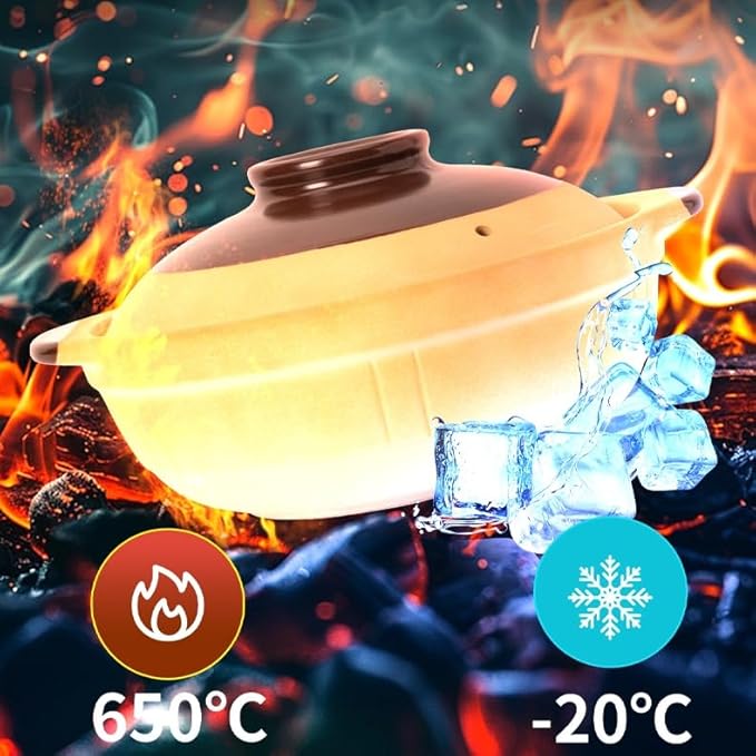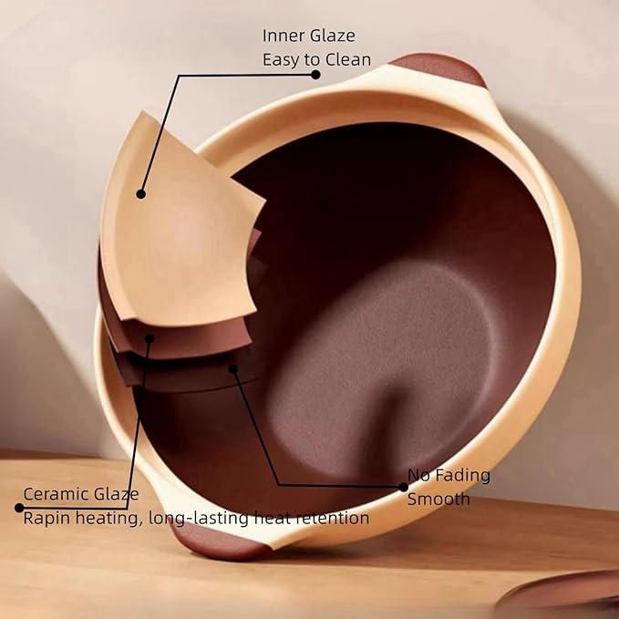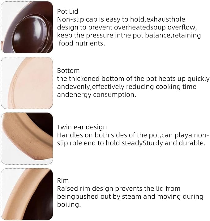- Ceramic casserole with lid design,the thickened pot wall ensure heat evenly and self-circulating to lock food's freshness. Once it boils the heat, the temp will last for a long time so you can eat the food warmly in a long time. Caution: Scald!