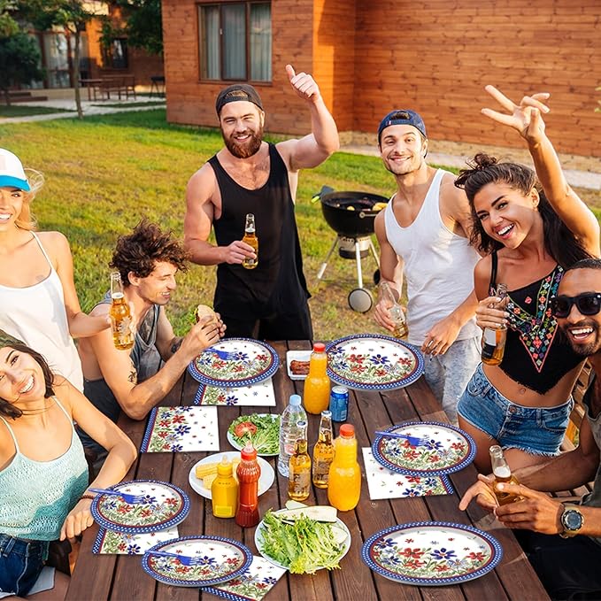 - Versatile use: The patriotic theme party decorations are practical and stunning. Ideal for patriotic party, 4th of July, labor day, independence day, veterans day , memorial day, festival celebration, picnic, BBQ, vacation, holiday celebrations and other events indoor or outdoor. This charming poppy flower theme dinnerware set brings a touch of cheerful vibe to celebrations, making every moment special.