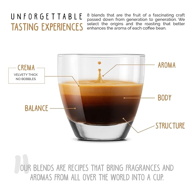 - Chocolaty and Intense Flavor Profile: With an intensity of 8/10, GranAroma delivers a bold and persistent coffee experience. This skillfully blended combination of Arabica and Robusta beans features rich hints of cocoa, spices, and dried fruit, creating a coffee that is both complex and satisfying, perfect for those who enjoy a strong and indulgent brew.