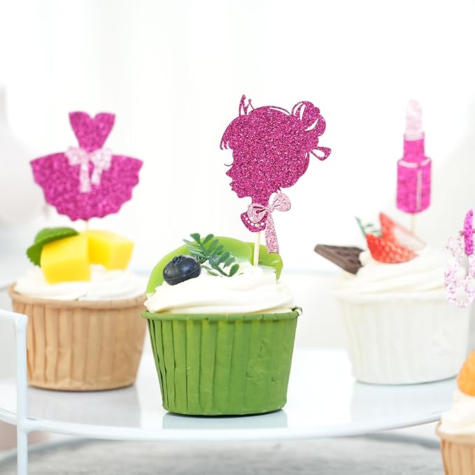 - Many and exquisite styles: Our pink cupcake set includes 24 cupcake toppers in 6 unique designs(Girl, skirt, perfume, car, sunglasses, happy birthday, etc.), with 4 of each style—plenty to decorate your desserts beautifully