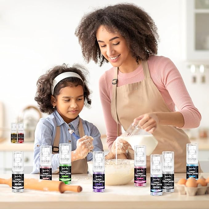 - Food Grade Edible Glitter Spray: Crafted from premium food-grade ingredients, our blue edible glitter spray is completely safe and devoid of fat, GMOs, gluten, dairy and nuts. The blue edible spray glitter is both sugar-free and flavorless, ensuring vibrant metallic effects for all applications without altering the taste or texture.