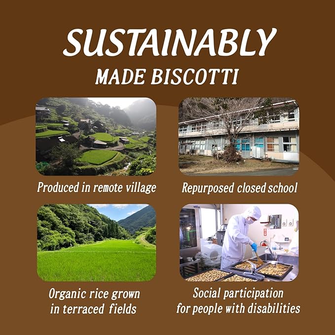- Japanese Rice Flour & Rice Bran: The rice flour and rice bran used in our biscotti are made from rice grown using unique organic methods in Japan. Rice flour is also gaining attention as an excellent alternative food.