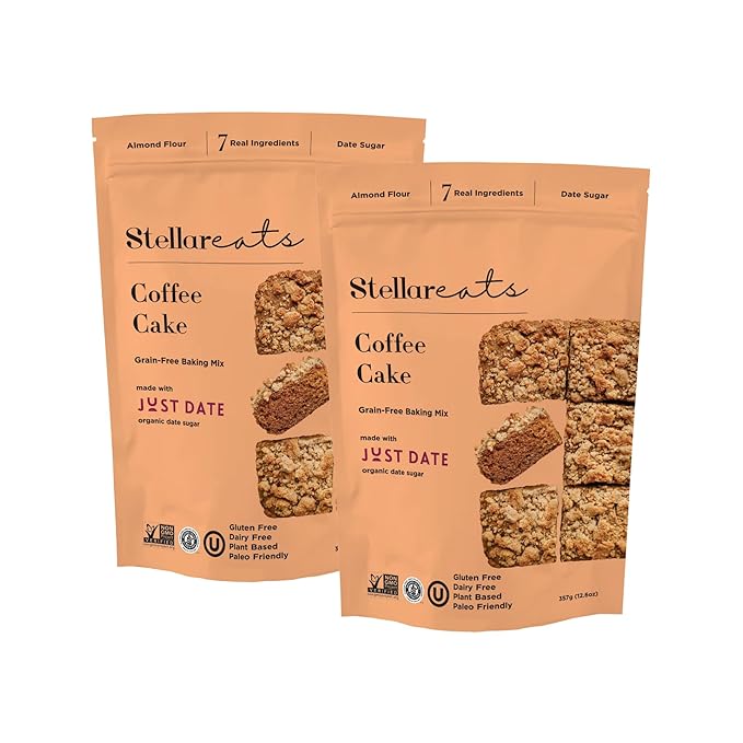 Stellar Eats Grain-Free Coffee Cake Baking Mix | Gluten-Free, Dairy-Free, Plant-Based, Paleo-Friendly, Naturally Sweetened with Date Sugar, Certified Kosher | Almond Flour-Based | 12.6 oz | 2 Pack