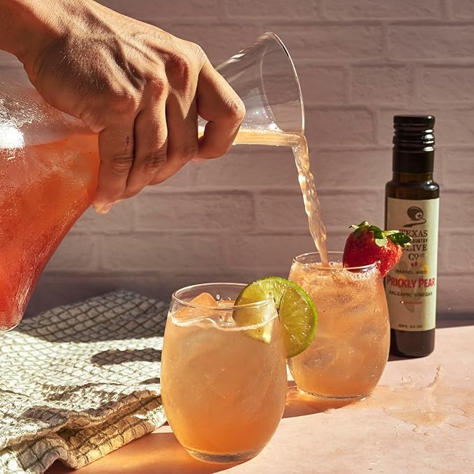 - PRICKLY PEAR BALSAMIC VINEGAR: Our prickly pear balsamic is crafted with a white balsamic vinegar base of trebbiano grapes and natural prickly pear flavor, this unique vinegar captures the sweet and slightly tangy notes of prickly pear cactus fruit with only natural ingredients that is perfect for adding depth and complexity to any dish. We hand blend this traditional balsamic vinegar Di Modena Italy right here in our facility in Texas. (8.5 Fl Oz)