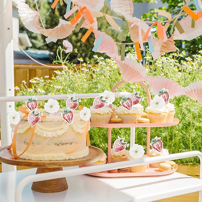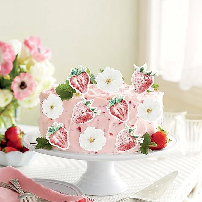 - Unique Design and Proper Size! Brace yourself for a ton of compliments.Your guests will love the unique strawberry design on the cake and cupcake, these edible strawberry cupcake toppers can be used at different theme party decorations