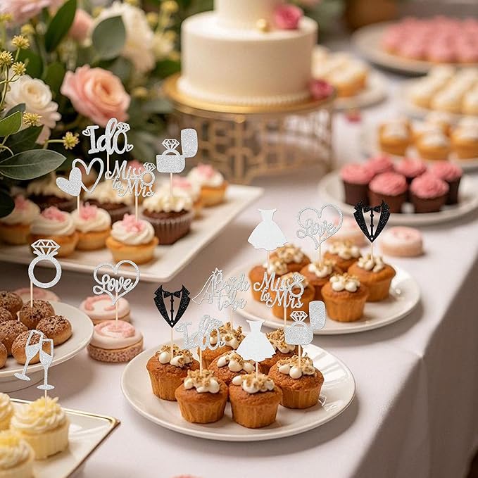 - Wide Usages ! These bride to be cupcake toppers are perfect for wedding engagement theme party, bride to be theme party, bridal shower theme party, miss to mrs love theme party, bachelorette theme party cupcake decorations, they can make your cupcake more attractive and bring the fun to your party.You can also apply them for ice cream, fruits, cookies and other desserts.