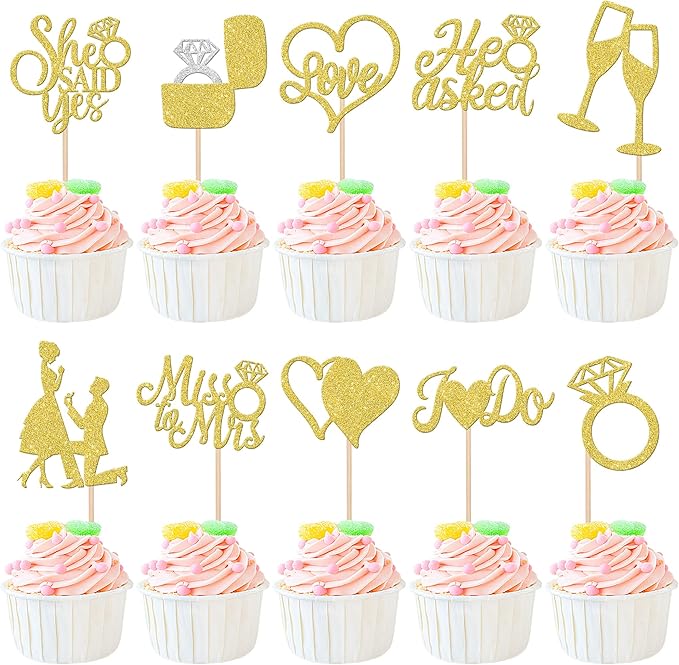- Wide Usages ! These he asked she said yes cupcake toppers are perfect for wedding engagement theme party, he asked she said yes theme party, bridal shower theme party, miss to mrs love theme party, bachelorette theme party cupcake decorations, they can make your cupcake more attractive and bring the fun to your party.You can also apply them for ice cream, fruits, cookies and other desserts.