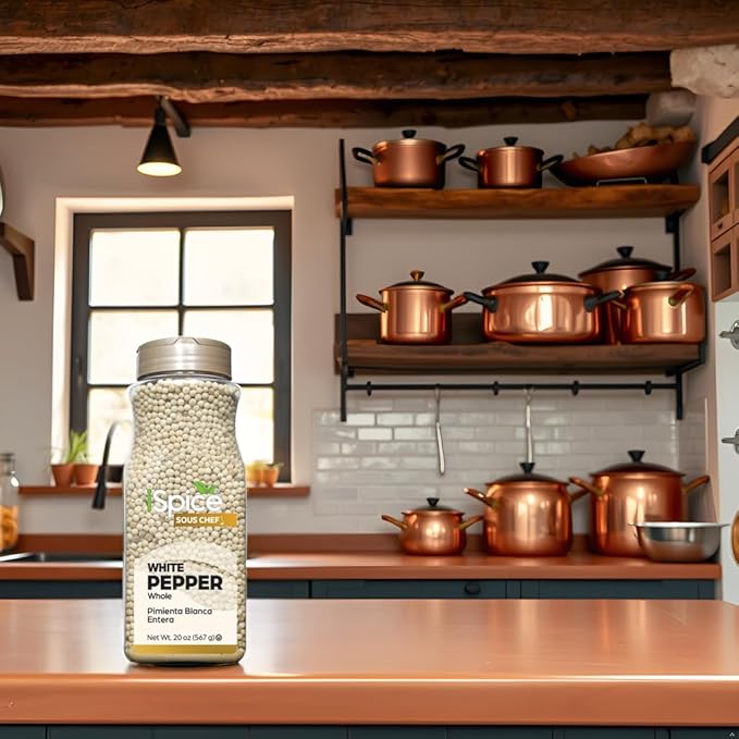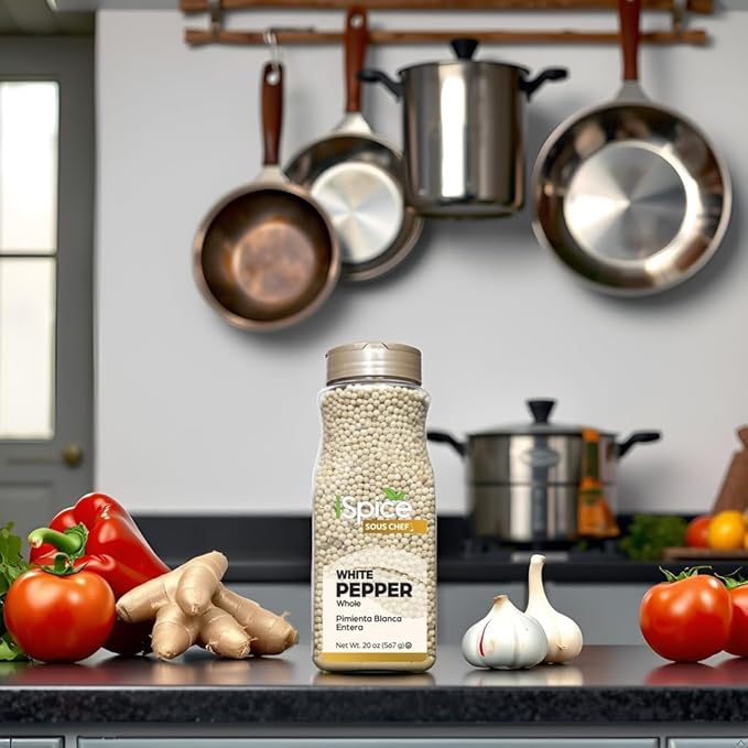 - ✔ PREMIUM WHOLE WHITE PEPPER – Fresh, aromatic, and carefully sourced for top-quality flavor. ✔ BULK SIZE FOR VALUE & FRESHNESS – 20 oz resealable pack ensures long-lasting use. ✔ VERSATILE SPICE – Perfect for seasoning meats, soups, sauces, and spice blends. ✔ KOSHER-CERTIFIED – High-quality, pure white peppercorns that meet strict Kosher standards. ✔ MILD & EARTHY FLAVOR – Delivers a smooth, warm taste with less pungency than black pepper.