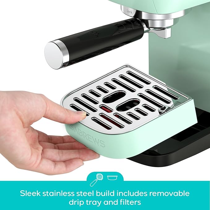 - Enjoy Barista-Quality Coffee at Home: The CASABREWS espresso machine in soothing Pastel Green lets you craft all your favorite coffeehouse drinks from the comfort of your own kitchen. Brew smooth espressos, creamy lattes, and rich cappuccinos with ease. With its fresh, nature-inspired color and compact design, this coffee maker adds a calm, refreshing touch to any home or office space.