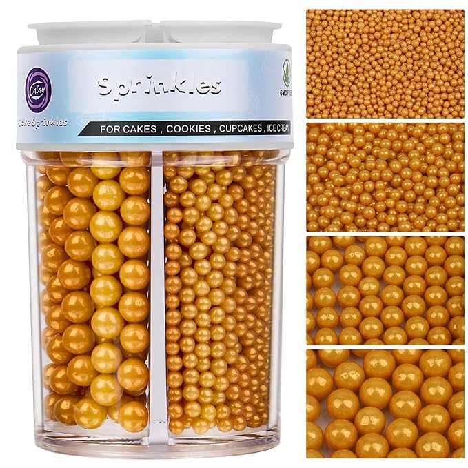 Sprinkles for Cake Decorating, Yellow Pearl Sprinkles 4 Sizes Mix for Cake Cupcake Cookie Baking Donuts Ice Cream Toppings
