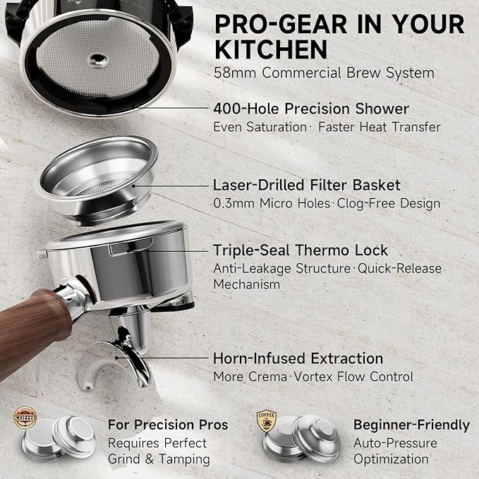 - 🌟 Built-in Precision Grinder: Our expresso coffee machines comes with 40 adjustable grind settings. Each grind size is meticulously calibrated to enhance extraction, guaranteeing a perfect cup every time.