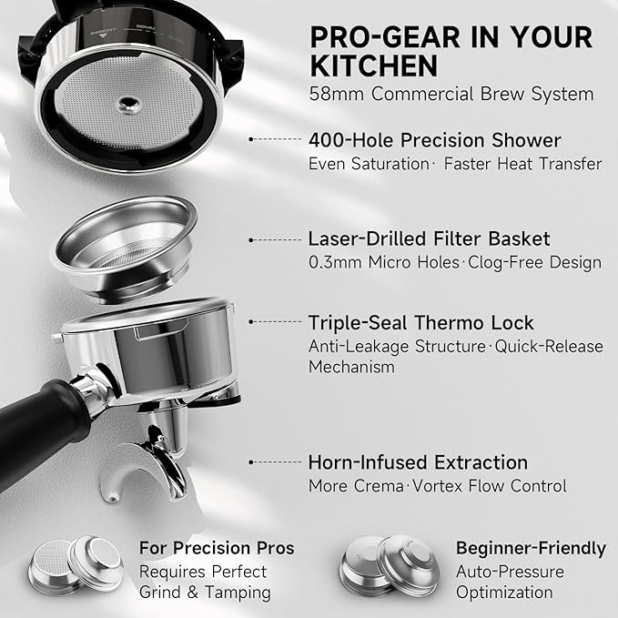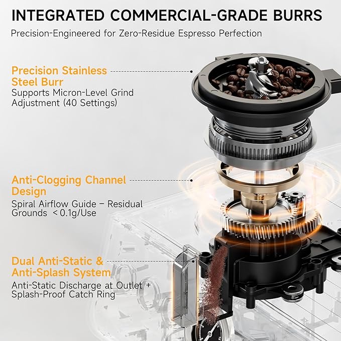 - 🌟 Built-in Precision Grinder: Our expresso coffee machines comes with 40 adjustable grind settings. Each grind size is meticulously calibrated to enhance extraction, guaranteeing a perfect cup every time.