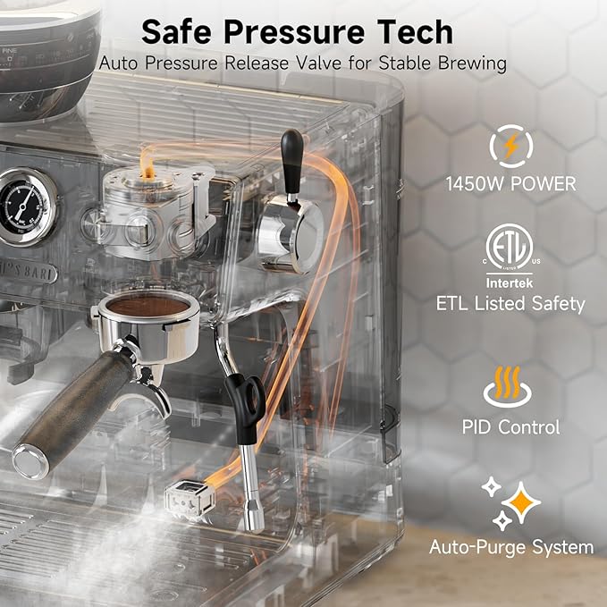 - 🧼 Ease of Maintenance: The coffee and espresso maker ia designed with practicality in mind. The detachable drip tray and a 3-liter removable water tank make cleaning hassle-free. With ETL certification, you can brew with confidence, enjoy your coffee moments with peace of mind.