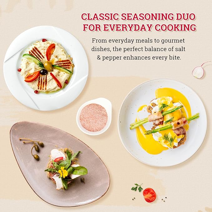 - Premium Quality Ingredients – Enjoy the pure, natural taste of 100% Fine Pink Salt and Whole Black Peppercorns, perfect for seasoning your favorite dishes.